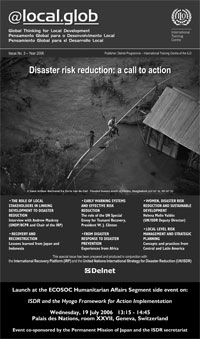 local, como municipalidades, gobiernos provinciales y regionales, La creciente preocupación que ha generado en nuestras sociedades la recurrencia de los desastres, su impacto negativo, el número de víctimas, las pérdidas provocadas a los medios de subsistencia, la economía, las infraestructuras y el medio ambiente se convirtió recientemente en una manifiesta demanda de información y capacitación sobre gestión y reducción de desastres a nivel local. A raíz de estas demandas, Delnet, en el marco de la Estrategia Internacional para la Reducción de Desastres, se hizo miembro, junto con el Programa de Respuesta a las Crisis y Reconstrucción de la OIT (OIT/CRISIS), de la Plataforma Internacional de Recuperación (IRP1, por sus siglas en inglés), creó un ámbito de especialización orientado a la promoción del desarrollo local sostenible como factor esencial de reducción del riesgo de desastres. Sobre la base de este planteamiento internacionalmente reconocido, Delnet está orientando su oferta de capacitación hacia un enfoque de la gestión del riesgo que impulse cambios estructurales, tanto en las sociedades más vulnerables como entre los organismos internacionales que las apoyan, para que se puedan gestionar los riesgos futuros de manera más eficaz y crear condiciones de desarrollo de mayor sostenibilidad. En este sentido, merece la pena destacar dos iniciativas concretas que ya se han puesto en marcha durante este año: